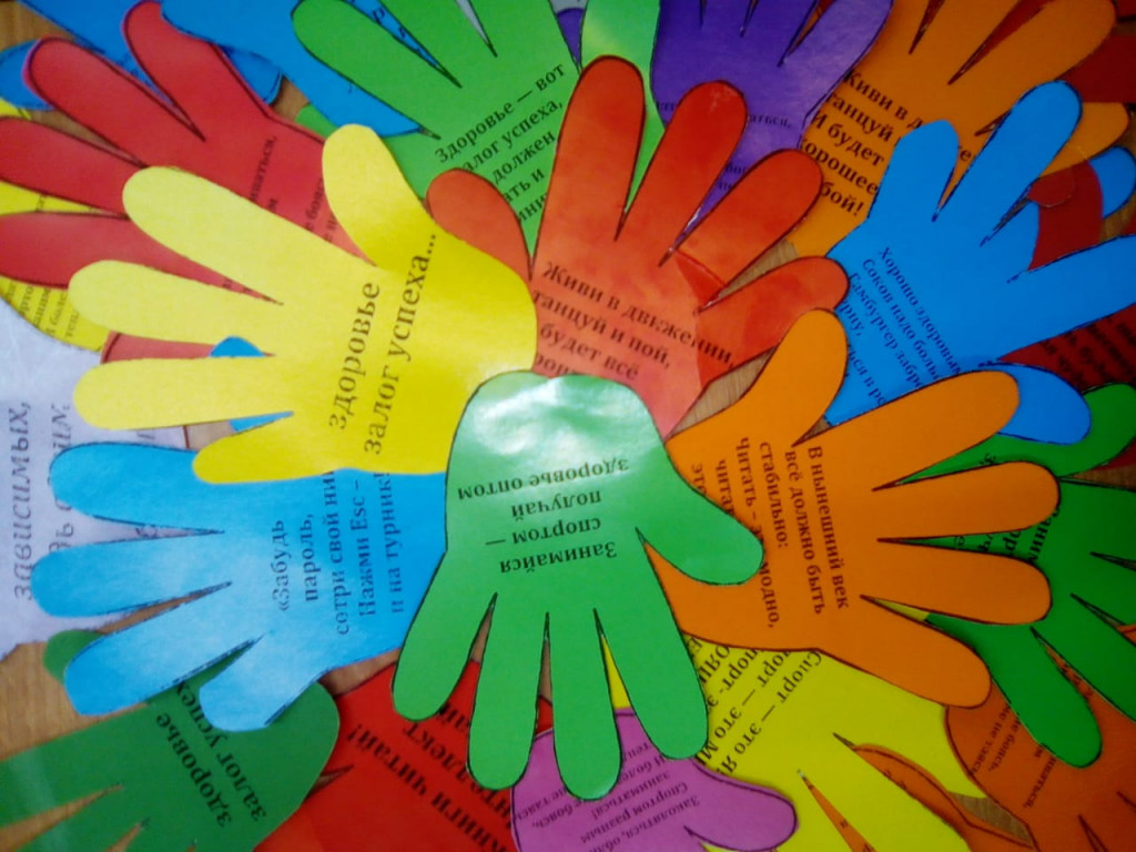 обучающимися 5-6 классов, раздавали ладошки с лозунгами по здоровому образу