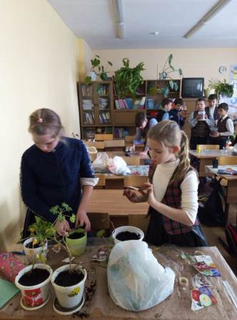 макулатуру, пересадили комнатные цветы, посадили рассаду для школьного участка,