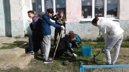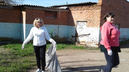 рамках субботника была очищена от зимнего мусора территория школьного двора,
