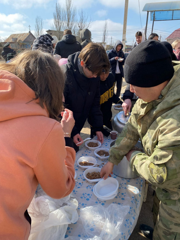 На территории администрации была расположена полевая кухня,где все желающие согревались горячим чаем и подкреплялись кашей.