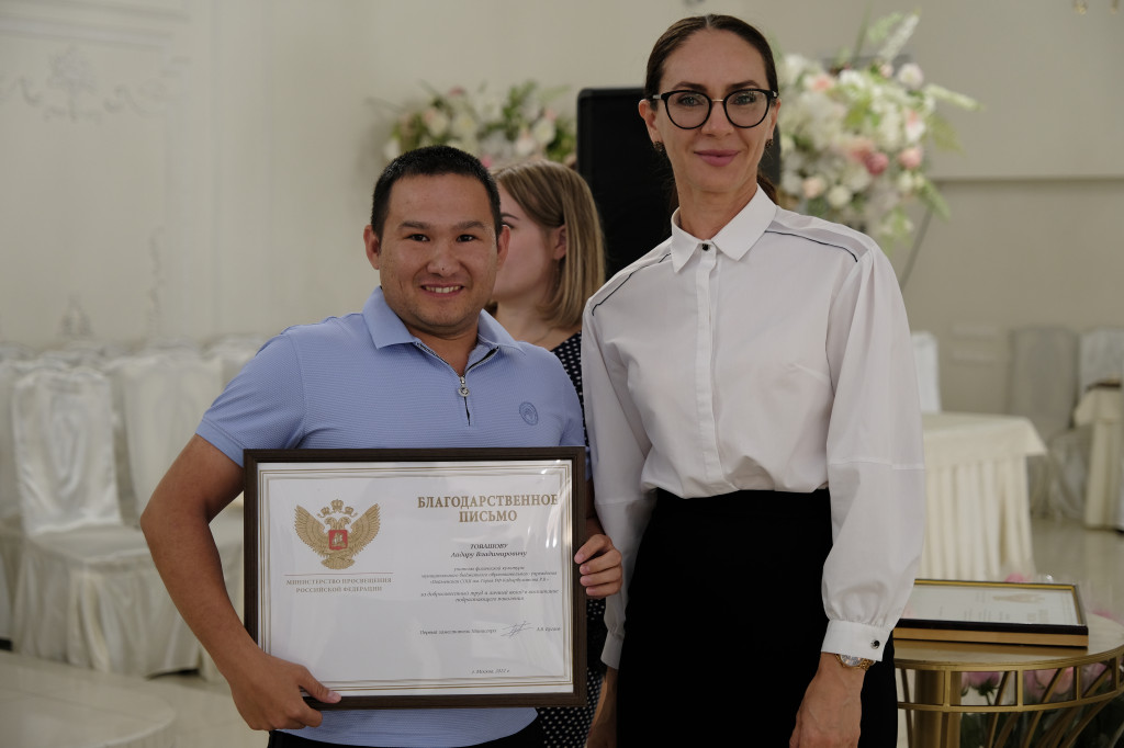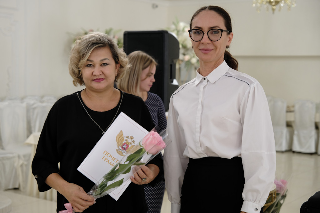В своем поздравлении она отметила почетными грамотами и благодарственными письмами педагогов Приволжского района. Также были вручены грамоты и благодарственные письма Министерства просвещения Российской Федерации, Министерства образования и науки Астраханской области.